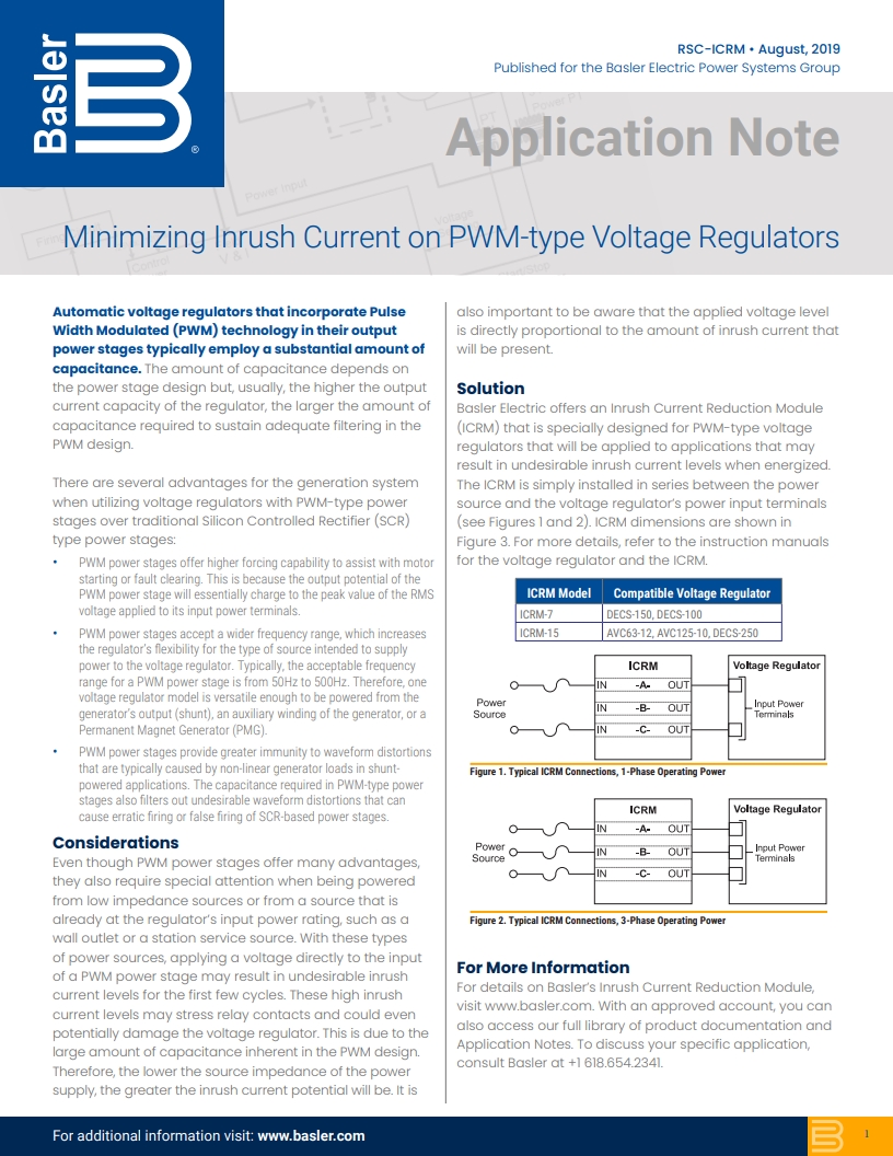 위와같이 PWM power stage는 많은 장점들이 있지만 Wall outlet이나 Station service source와 같은 AVR input power정격이 이미 형성된 파워가 낮은 임피던스(Low impedance) 파워로부터 오는 전원을 사용할 경우 주의를 해야 합니다. 이 같은 전원이 PWM power stage의 input power에 직접인가되면 처음 몇 사이클동안 원하지 않는 높은 돌입전류가 발생합니다. 이 High Inrush Current로 Relay Contact에 스트레스를 주거나 심지어 AVR이 파손 되는 경우도 있습니다. 이 같은 현상은 PWM design에 내재된 많은 양의 커퍼시탄스(Capacitance)때문입니다. 그런고로 임피던스가 낮으면 낮을 수록 더 많은 돌입전류가 있게 됩니다.