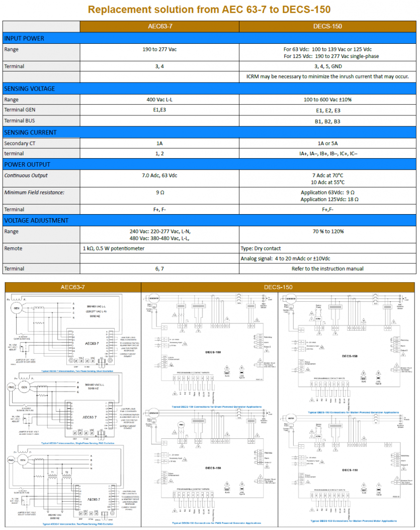 단종품 Basler Model AEC63-7은 동등모델인 DECS-150 으로 대체하여 사용가능 합니다.